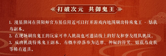 特殊鬼王副本是一个特殊的活动副本,目前仅能在阴阳师北京和广州元旦漫展上的阴阳师展台附近才能参与。