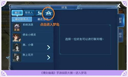 参赛玩家可在游戏内梦岛界面参与报名。进入游戏内好友界面,点击梦岛。