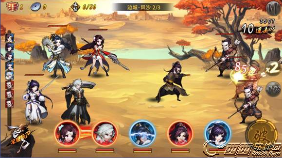 在战斗中,根据敌我双方的速度,确定出手顺序依次出手释放普通攻击或者小技能。左侧的行动可以查看出手顺序。