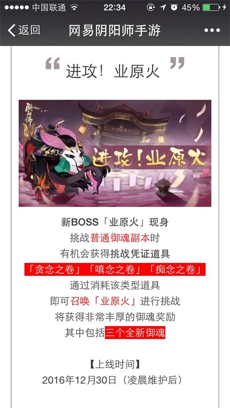 全新强力BOSS「业原火」登场御魂副本,各位阴阳师在挑战原御魂副本「八岐大蛇」时