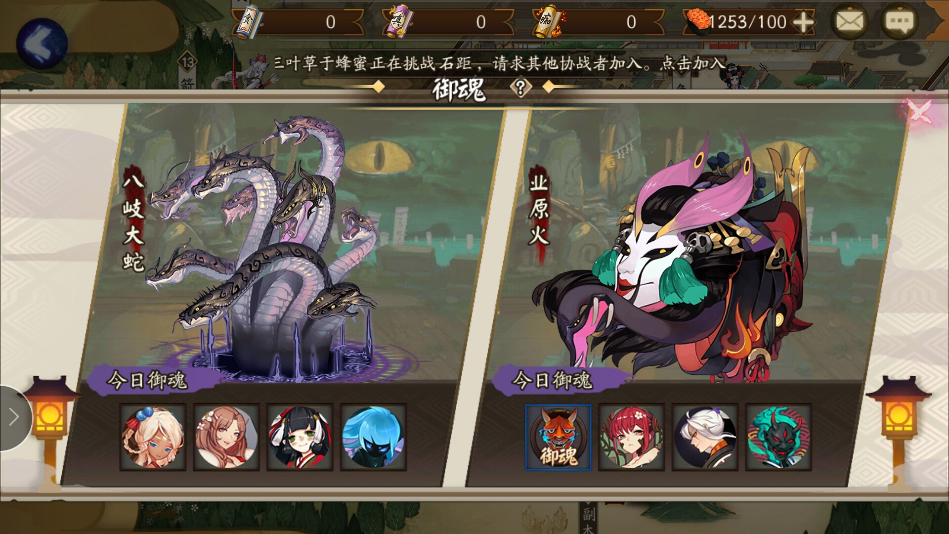 阴阳师业原火就在御魂副本里面,点开即可看到,不过业原火的攻打需要挑战券,通过打普通御魂副本获得。