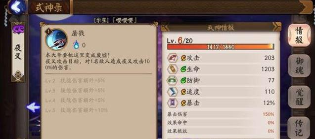 点评:阴阳师夜叉作为一个sr单体输出,打单个目标和妖狐的期望是一样的,不考虑妖狐更容易出发针女的话。就是带加速的aoe版妖狐,感觉可以试试狰,反击加速反击加速。