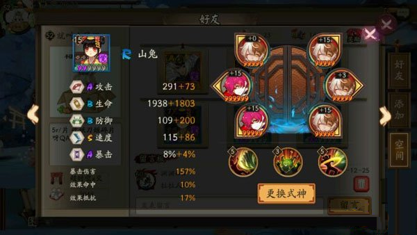 4、在说下输出,输出的话攻击跟血量要平衡,不然很容易会把自己反死,还有暴击御魂不能带因为8还是9层会有莹草带地藏的,你一个暴击下去她出个盾还回2000血。