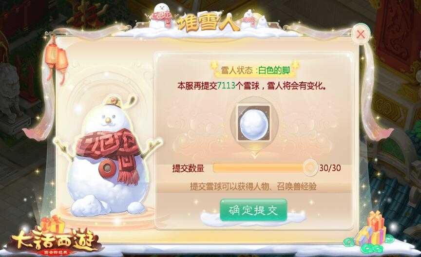 此外,玩家也可参与“雪人之心”玩法,通过提交“堆雪人”玩法中获取的“雪人之心”道具触发该任务,除了将收获丰厚经验奖励外,也会获得变身雪人的宝贵机会,重温那些在《大话西游》手游中度过的温馨快乐时光。