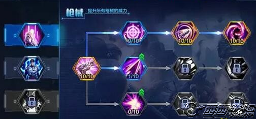 天赋系统中一共有三个天赋树,分别是枪械、生存和战斗。这三个天赋分别代表了三种不同的属性,枪械可以增加枪械的伤害,生存则是增加生存能力,而战斗则是增加整体战斗水平。