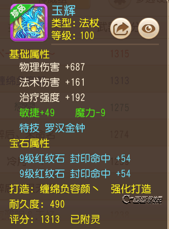 方寸神器,高达49的加敏,减魔的话虽然是不如减力,但是也影响不大,更是有天然的罗汉金钟特技,省了一大笔洗炼费用。不过亮点还是在9级宝石上,9级红纹,事实证明,只要你有梦想,虽然等你的更多是担架,但也绝对是有一辆摩托的。
