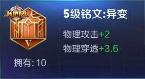 标准的百穿符文,配上不俗的攻击力加成以及移速加成。让关羽跑得更快,飞得更高,刀刀致命,成为一个让敌人敬畏的存在。
