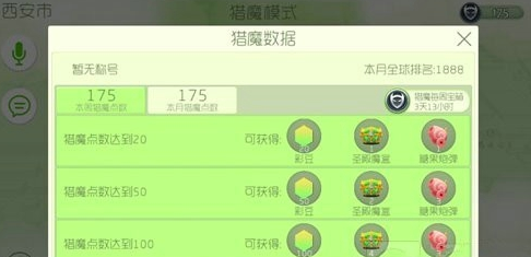 猎魔点数达到50,可兑换50彩豆,圣殿魔盒2个,糖果炮弹3个