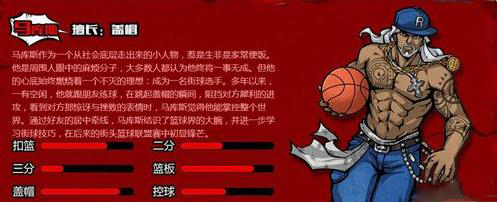 马库斯 :有着绝佳的盖帽能力,更适合防守,而进攻技能还是战斧投篮和背扣,降低对手的干扰。