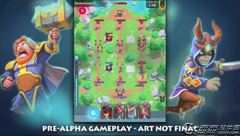 《神之浩劫:宿敌》是一款融合了 MOBA 和 TCG 元素的策略游戏,整体玩法上与《皇室战争》类似,都是以集换式卡牌来推动游戏。不同的是,《宿敌》中拥有三条进攻道路,必须先打掉前面的三座防御塔才能对主城发起攻击,卡牌类别也是分为建筑、法术、兵种等。