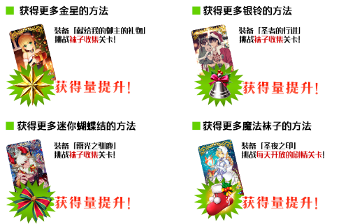 在活动关卡中收集魔法袜子,然后就可以从圣诞Alter那里获得奖品啦!
