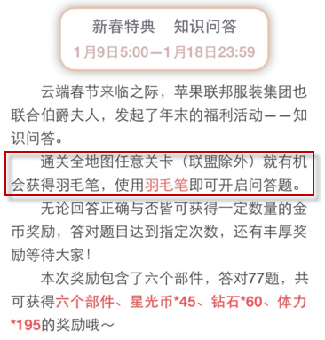 通关全地图任意关卡(联盟地图除外)就有机会获得羽毛笔,使用羽毛笔即可开启问答题。
