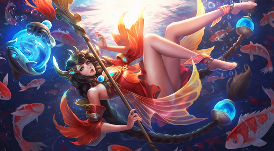 大乔召唤鲤鱼向指定方向跳跃,对于路径上的敌人造成法术伤害与击退效果,鲤鱼经过的区域会在4秒内持续增加区域内友军的移动速度