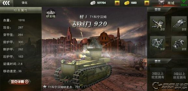 美系第一台的坦克,想对比其他系列,可以看到数据,血量高,威力高,穿甲较低,护甲较低,速度较高,所以这是一部高血量高伤害的坦克,但是缺点在于防御低,选择好第一台坦克,就可以根据这一台继续往下发展