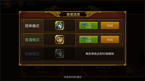 盗宝旅团同样也分为简单、普通、困难三种模式,玩家可以根据自己等级和战力的具体情况选择模式,模式越难,奖励则越丰厚。