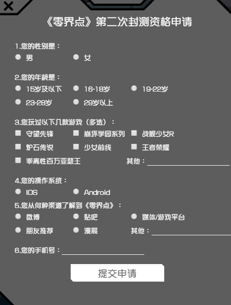 填写相关信息,就有机会预约成功,获得零界点手游激活码哦!