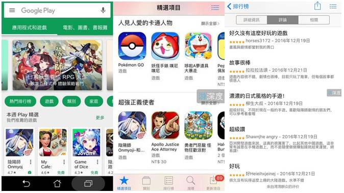 在11月底官方开启事前登陆的时候,两地玩家就给予了热烈的反映。台湾地区的事前登陆人数在短短3天内突破了5万人。正式上架当天,《阴阳师》出现在Google Play和App Store的首页推荐位置上,充分证明两大游戏平台对其品质的肯定,玩家的留言也几乎是清一色五星好评,对玩法、画风、剧情都纷纷点赞。