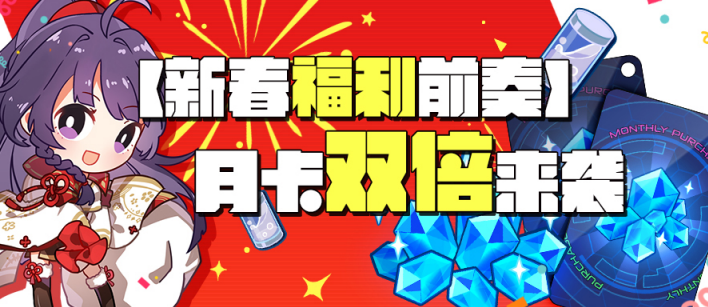 2)无论在什么时间购买的月卡,月卡有效期与双倍时间重合的时间段内,每天都可以收到120水晶的月卡奖励!