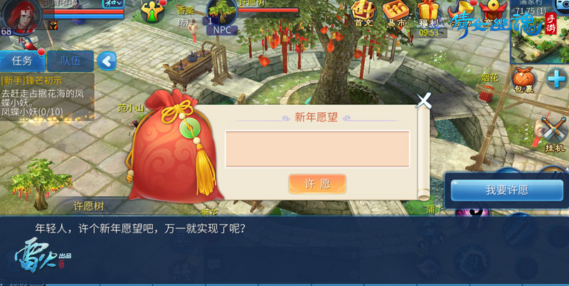 没了年兽的威胁,蒲家村的新年十分祥和,村口的大树上挂满了人们的新年愿望,写下你的新年愿望吧,或许会有意外的惊喜礼物。在礼物中,包含各种价值不菲的游戏道具,更有iphone7、零食大礼包以及和代言人杨洋线下见面的机会哦!