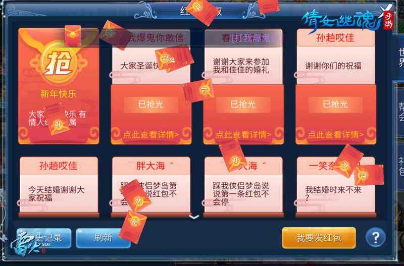 从除夕夜到年初三晚上,神秘人物还将在晚上20点-22点每个整点在三界遍撒红包,普天同庆新春佳节!各位少侠千万不要错过!