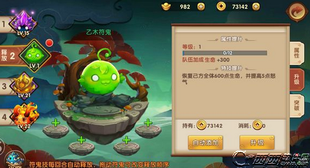 突破1——突破5分别需要1/1/2/2/3只同颜色的符鬼做材料