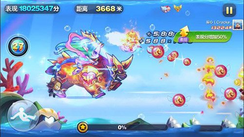 小龙女满能量使用技能,可巨化并带来高分鹦鹉螺和珍珠飞币,疯狂冲刺,还有表现分加成。仅仅从造型上来看,小龙女和圣麒麟就很搭,一看都是水属性的,如果再配上合适的宠物、精灵和宝物,得分能力肯定不会让人失望。