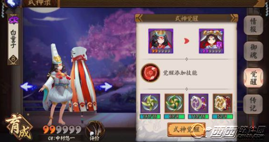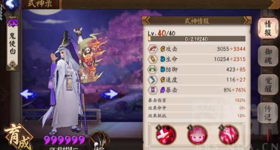 技能三:招魂,召唤巨大的包子,对全体敌方单位造成攻击106%的伤害,并唤醒所有阵亡单位的魂魄,指南行动1次,继承目标100%攻击,并在被唤醒时立即使用普攻对随机目标进行攻击。点评:aoe+复活效果,配合单体输出式神,比如黑童子、夜叉的话,感觉效果很不错。可以召唤敌方单位怼对面。