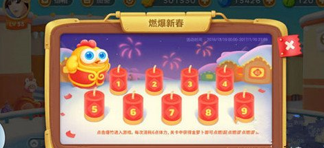 点击爆竹进入游戏,每次消耗6点体力,关卡中获得金萝卜即可点燃爆竹,所有爆竹都被点燃即可获得呆萌的鸡年萝卜小吉!
