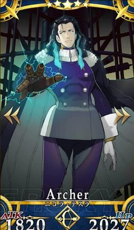 考虑到特斯拉宝具本已开放,其实际宝具输出能力目前强于闪闪,因而在需求弓阶光炮或是人阵营以外从者战时,在非暴击队里特斯拉是比起闪闪更好的选择。