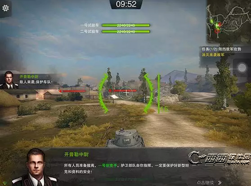 游戏的任务是掩护坦克撤退,而其中一辆坦克会被敌人的炮火直接摧毁,因此尽量不要离另一辆太远,只要等坦克到达地图标记的地点就可以了。