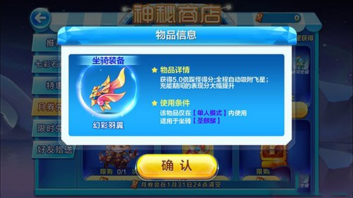 圣麒麟作为上期的月券大奖,本身实力就是比较强大的,本次月券计划中,幻彩羽翼来袭,更是加强了圣麒麟的属性。幻彩羽翼是圣麒麟专属配饰,作用于经典模式,增加圣麒麟的踩怪得分与积攒能量条时的表现得分。
