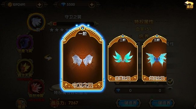 除了狂拽酷炫叼的外形,翅膀能给你的惊喜绝对不止于此!翅膀附带给力属性加成,在装备上翅膀后,翅膀会即刻出现在人物外观上,而且翅膀会永久性的增加角色的属性值。在游戏中,随着翅膀的品阶和星级的变化,所附带的属性也将随之增长。攻击、防御、血量、暴击等等,所加成的属性配合酷炫外观让你由内而外散发出王者的魅力!