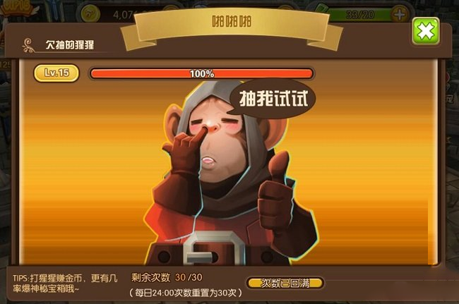 欠抽的猩猩:看到这上面的这个猩猩了没有,只要你每天到这里抽猩猩耳光,会有不小的几率掉落刷新令哦,要是你是欧皇的话,在这里还有可能获得神秘宝箱哦!