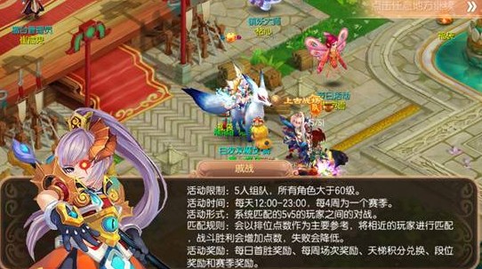 2、达到60级之后即可五人组队参加,活动采用积分制,每四周为一个赛季,且有相应段位排名,初始为白银1段800积分,赢了获得积分,输了扣减积分,段位越高奖励越丰厚!