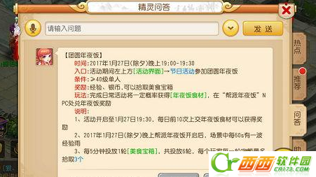 1.活动开启至1月7日19:30,每日前10次上交年夜饭食材可以获得奖励。