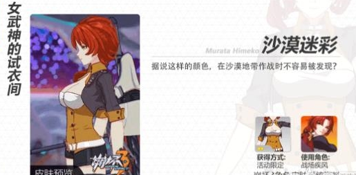 姬子少校的新服装【沙漠迷彩】和芽衣姐姐的新服装【绀碧】,也会在新春活动中加入豪华奖励套餐!