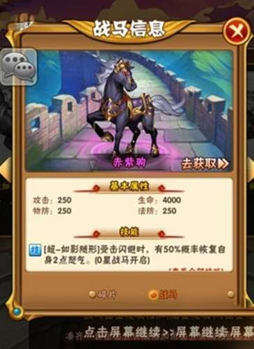 的卢马:建议佩戴武将:周瑜或者猪脚,理由:在对方第一个超合击或者第二个超合击之后也许可以挽救一个本方武将。这匹战马的属性技能增幅比较一般,但是需作为和赤兔配对开图鉴的红马,可升级到二星。