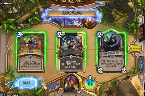 乱斗介绍:选择10张卡牌,每当你抽一张牌时,转而从你牌库里发现一张(3选1),这能大大的提升卡牌之间的COMBO成功率,所以本周一些常规对战里不好组合的配合套牌,也可以在法典对决里进行实验了。