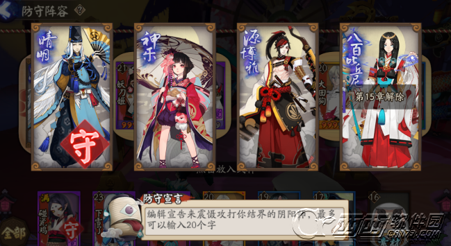 首页 → 安卓游戏资讯 → 安卓游戏攻略 → 阴阳师结界防守宣言怎么设置 阴阳师结界防守宣言在哪