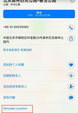 一、打开手机自带地图,在地图上随意选点,在任意位置(阴阳师漫展位置)长按可标记,上拉菜单会看到Simulate Location,点击他以后虚拟定位就完成了(注意上拉菜单别从底部把控制中心都拉上来)