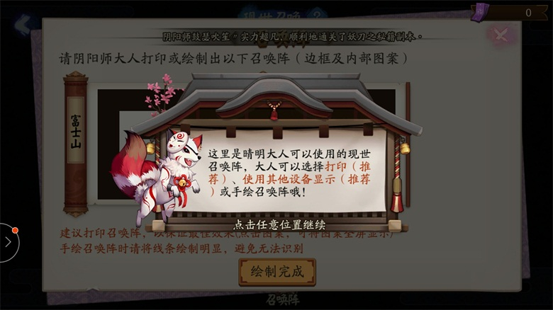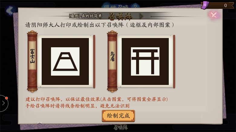 当然,你必须准备好现世召唤的纸,就是自己画好(打印也行)的都是可以的,他识别成功了是会有特效的。