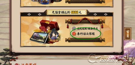 春竹语头像框和庭院皮肤·暖春翠庭的充值指定金额都是6666元。