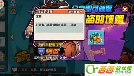 活动规则:在游戏内分享活动至微信或QQ,即可领取“海盗的馈赠礼包”,打开后有几率获得球员——海盗。