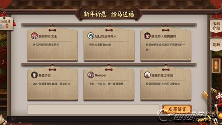 玩家可以在左侧灯笼中找到该活动。只要在绘马墙上祝福留言,就可以等到50勾玉和2各招福达摩,但要消耗一枚绘马。
