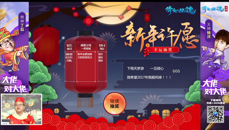 丁磊和杨洋的世纪对决,爆点满满,福利多多,少侠们千万不要错过。当然,倩女幽魂手游新年祈愿活动还将继续,更多大奖尚未领取,大家可要抓紧时间了!