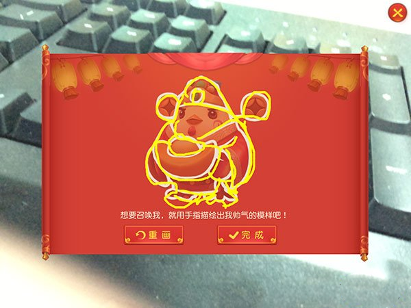 2、找画卷:找到画卷后,会叫你画个神鸡的画,把白线都画了就可以了。