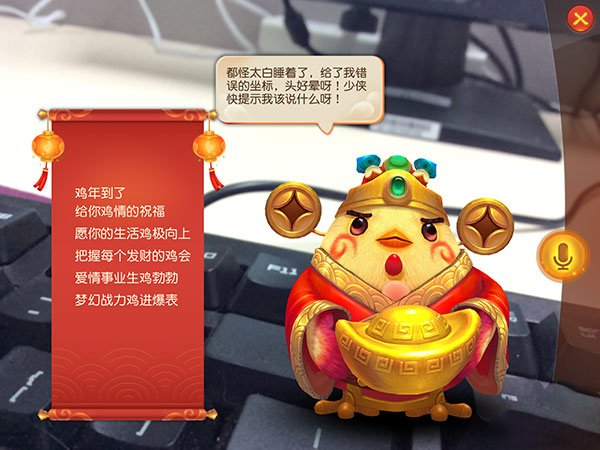 3、语音召唤:点右边的语音按钮,可以召唤财神,他会叫你说话,不过小编试过不说话也可以完成。