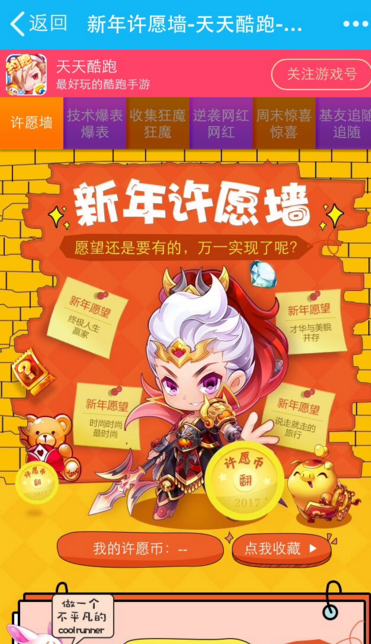 天天酷跑新年许愿墙活动地址:戳我进入