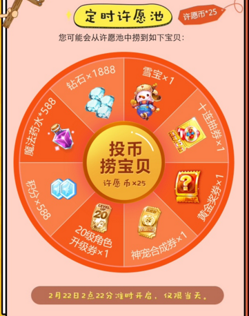 2、活动期间,玩家首次进入页面并登录游戏可获得2枚许愿币,许愿币自动入账;