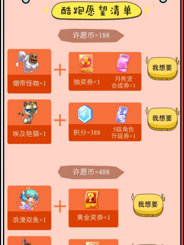 2.酷跑许愿单